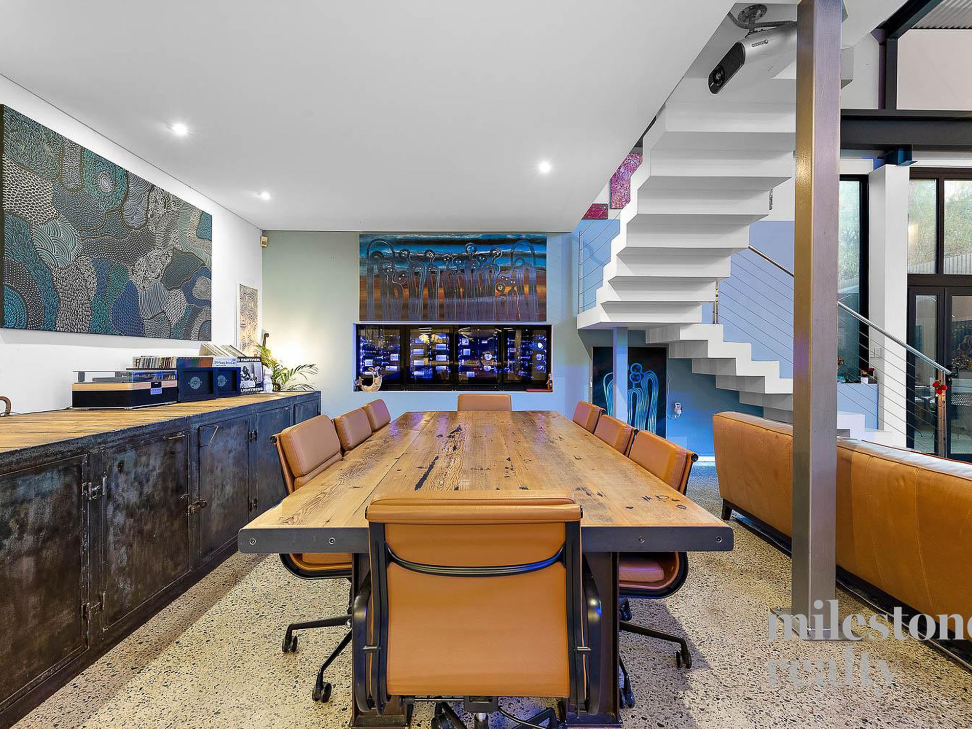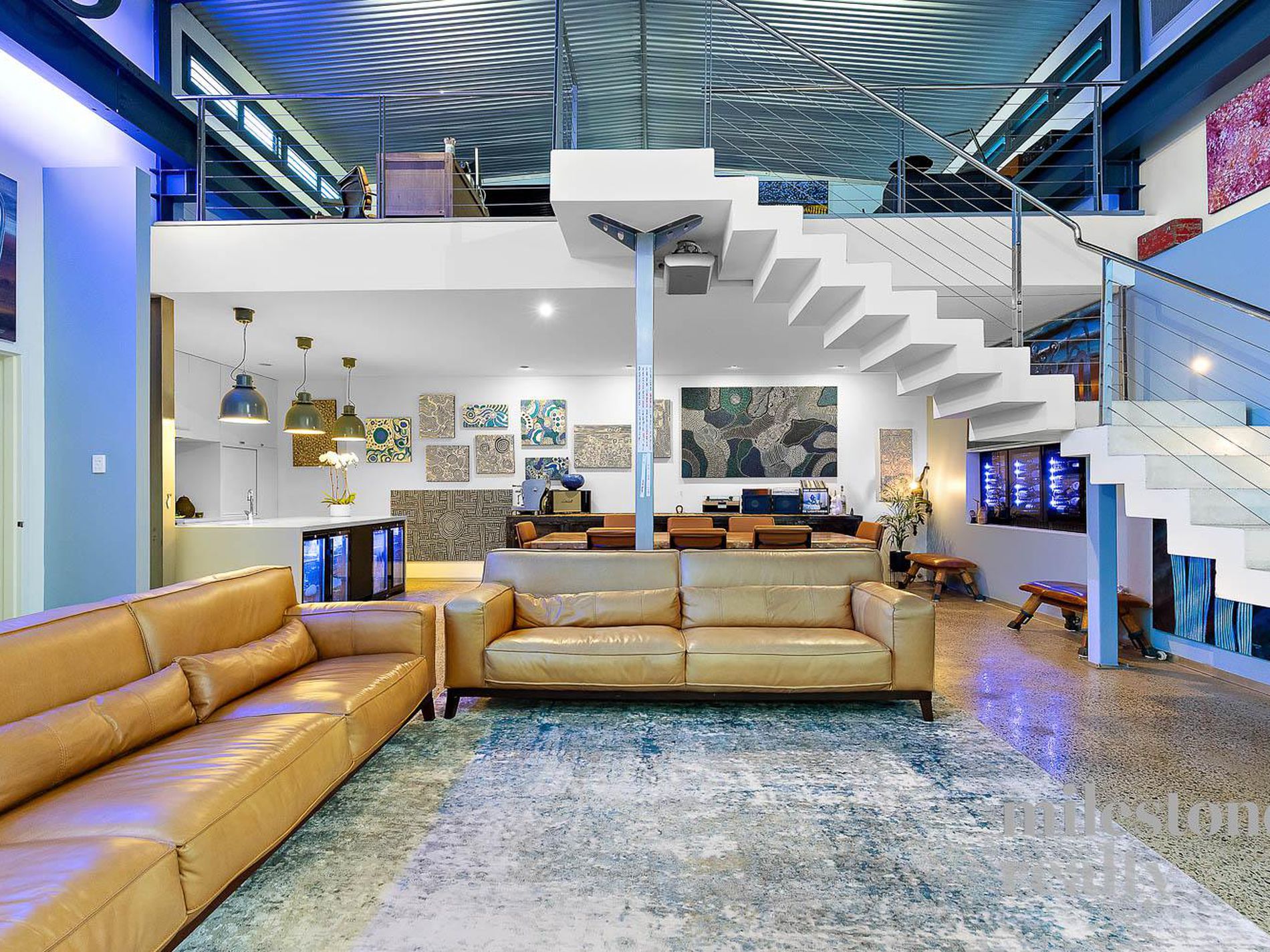 dramatic open-plan boardroom-style living domain, complemented by a mezzanine