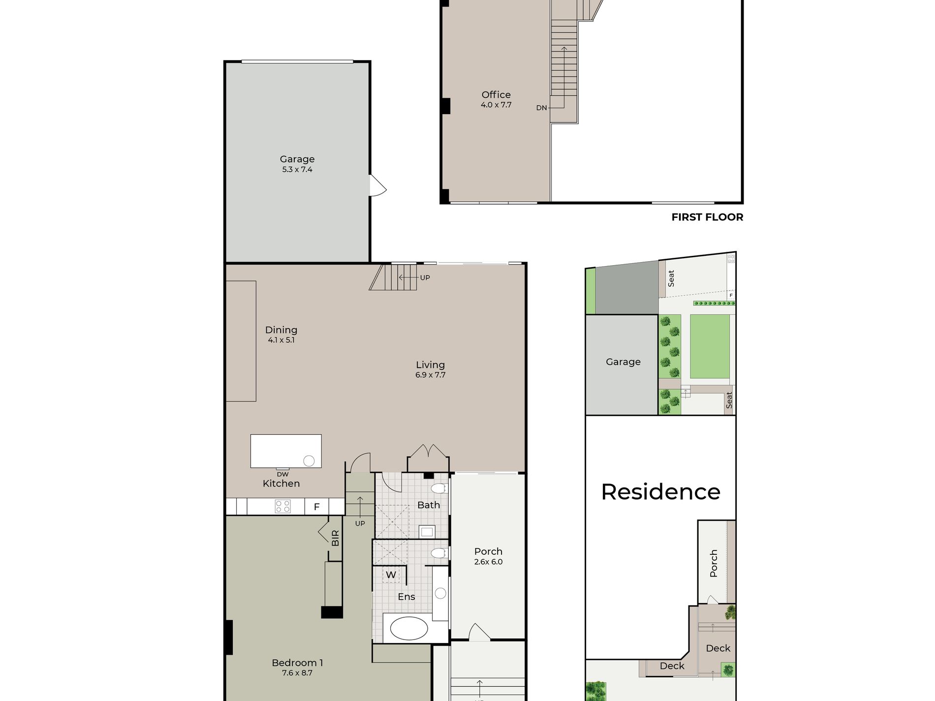 open-plan entertaining. Upstairs is your creative or strategy zone. The rear workshop